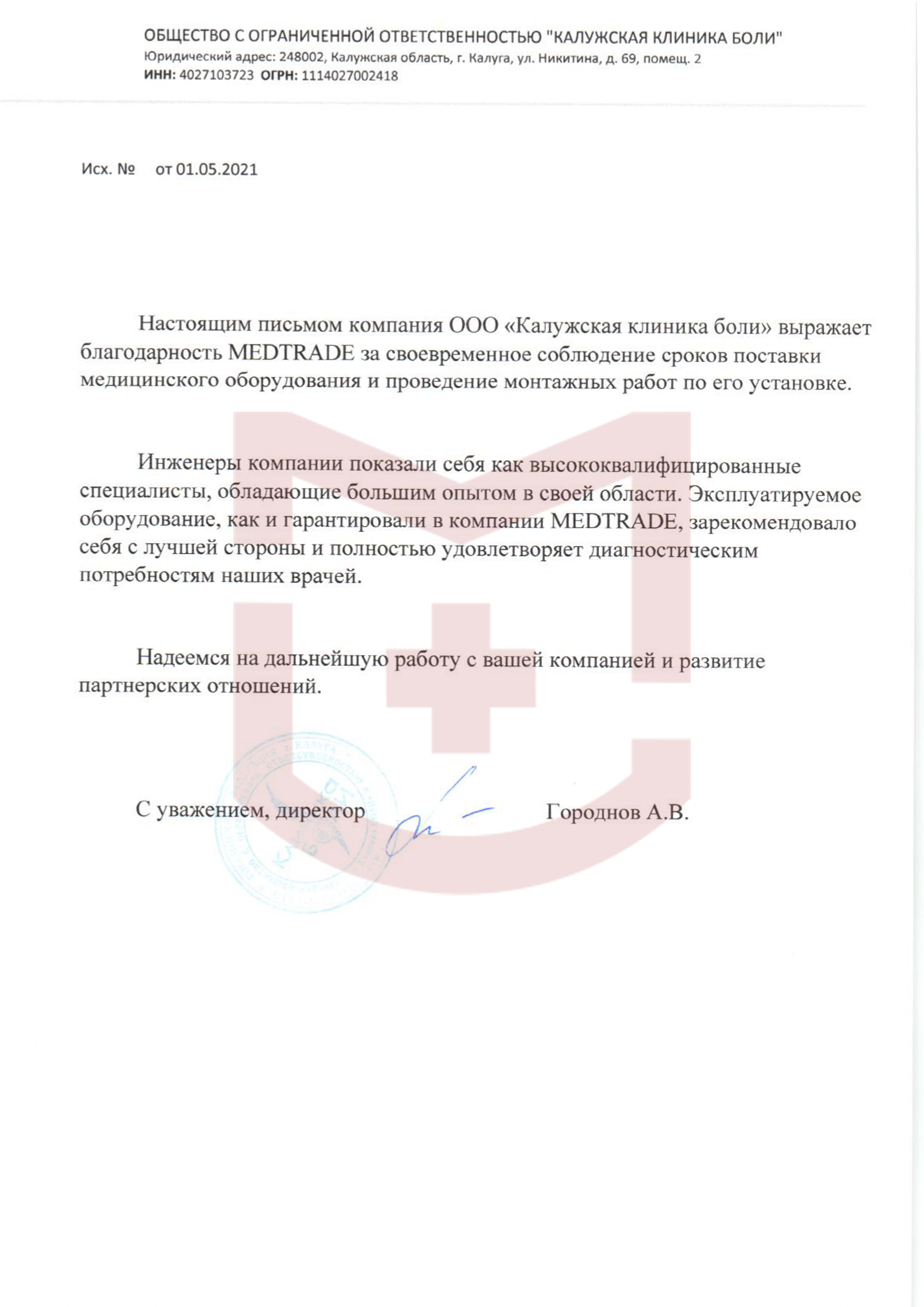 Отзыв от «Калужской клиники боли»