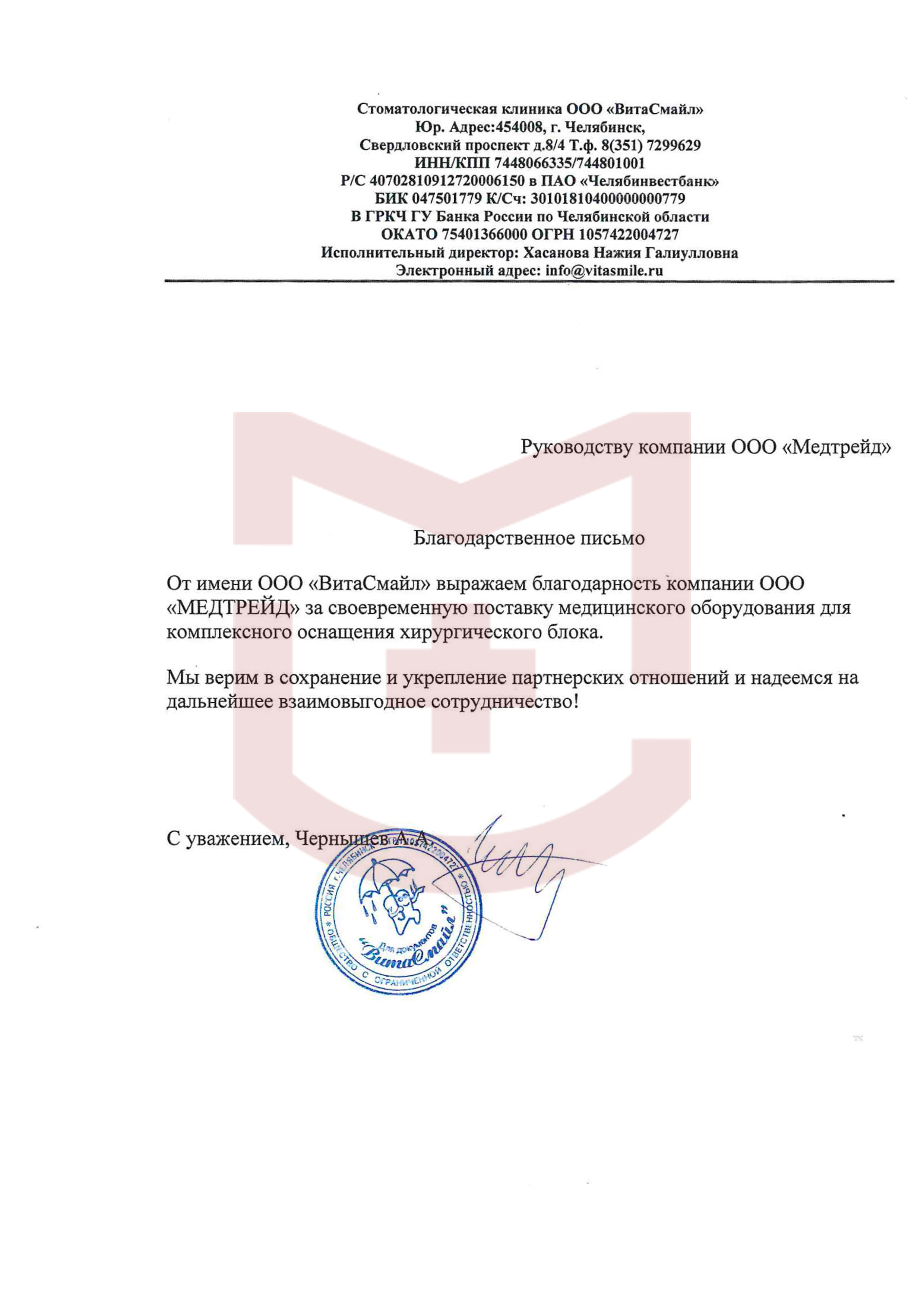 ГлавнаяОтзывыЧастные клиникиОтзыв от ООО «ВитаСмайл»