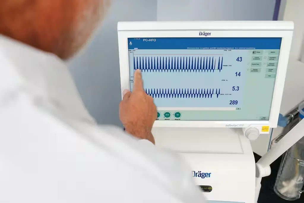 • Оригинальная технология Dräger для адаптации и компенсации утечек, обеспечивающая прецизионное триггирование и вентиляцию с целевым объемом