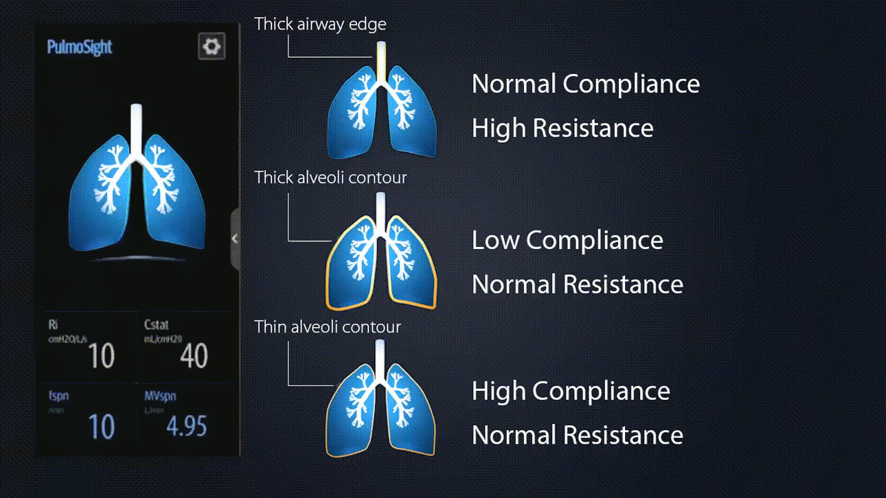 Графическое отображение сопротивления, податливости и состояния дыхательной системы позволяет врачам интуитивно и быстро оценивать изменения в состоянии дыхательной системы пациента.