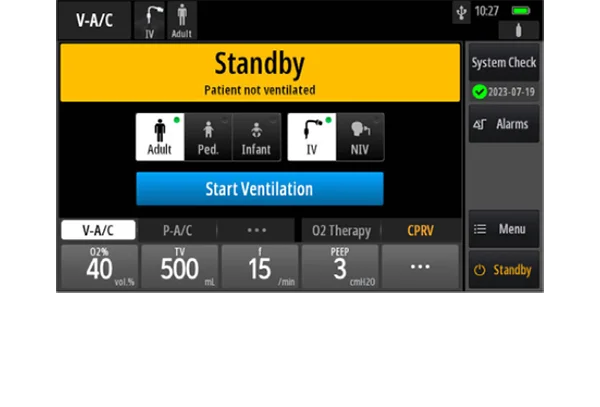 • Поддерживает инвазивную, неинвазивную и O2-терапию