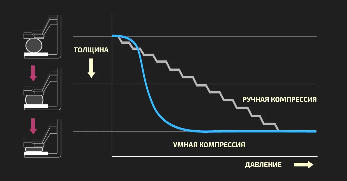 Умная компрессия. Автоматическая система определения степени компрессии индивидуально для каждого пациента.
