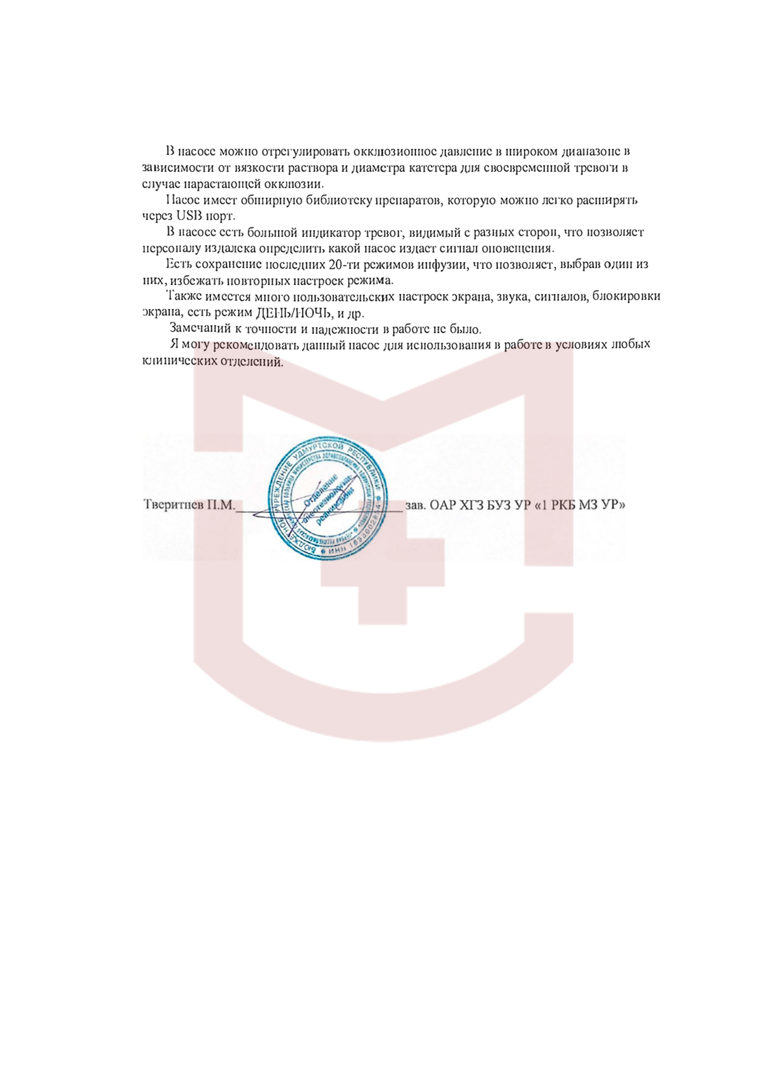 • Мониторинг состояния инфузии в режиме реального времени и срабатывание аварийных сигналов тревоги при ошибках инфузии;