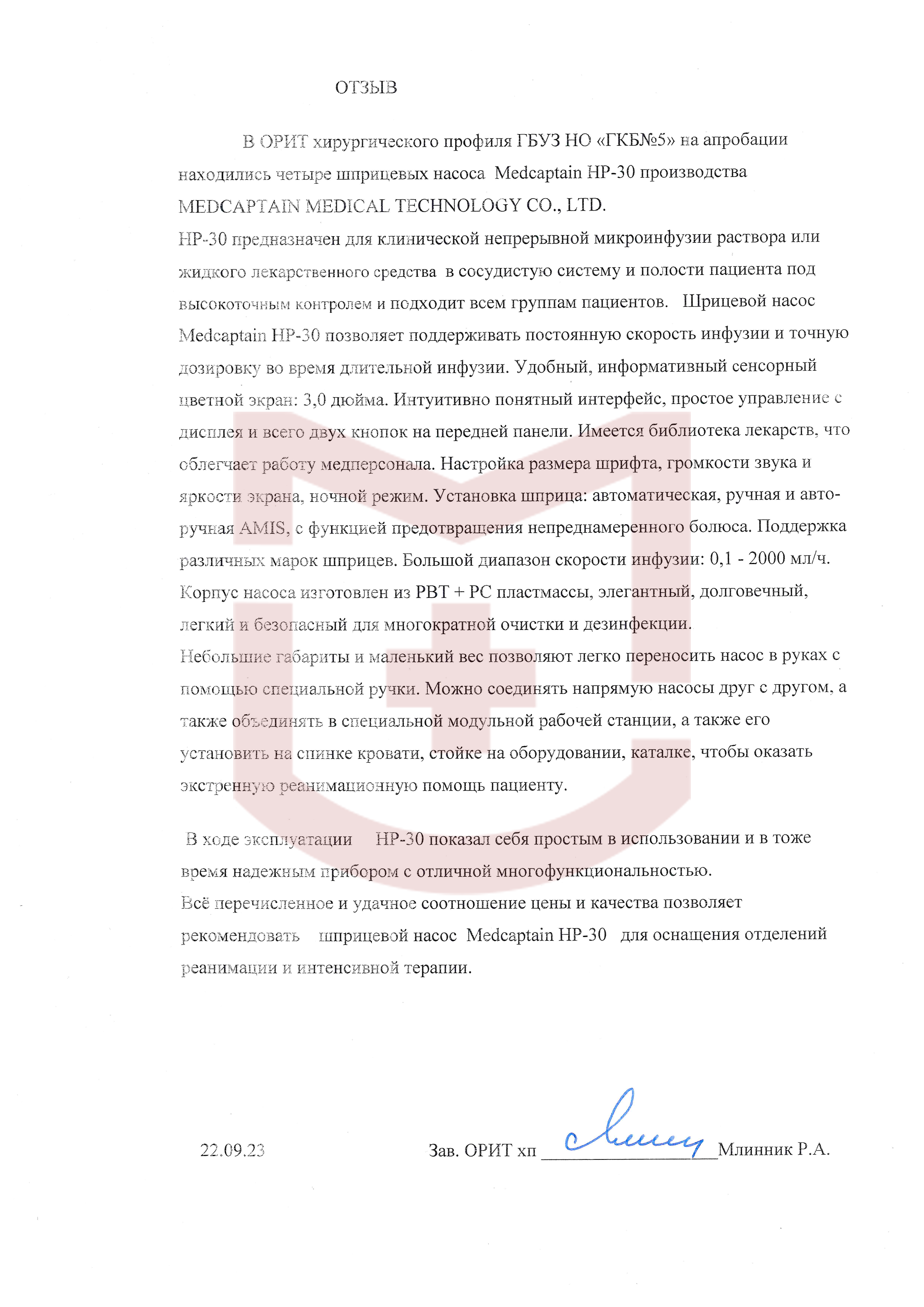 Шприцевой насос HP-30 — одноканальное, простое в эксплуатации устройство, используемое в  ОРИТ, неонатологии, онкологии, ПИТ разных профилей, МЧС и СМП, где необходимо введение лекарственных препаратов в точной дозировке.