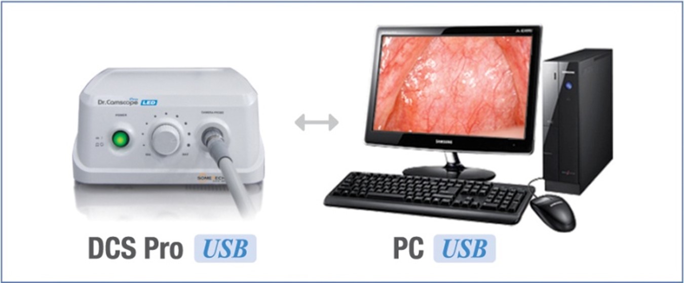 Dr. Camscope подсоединяется к компьютеру с установленным ПО через USB 2.0 кабель для сохранения данных и ведения истории пациента.