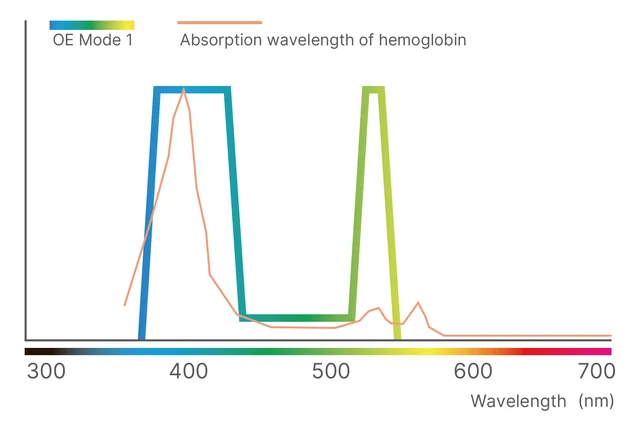 OE (Optical Enhancement): Выделяет поверхностные структуры кровеносных сосудов, железистых протоков и слизистой.